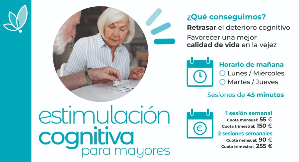 Actividades diseñadas para ejercitar la memoria, la atención, el lenguaje y otras funciones cognitivas. Favorece el mantenimiento y desarrollo de las capacidades mentales, contribuyendo a una mejor calidad de vida.